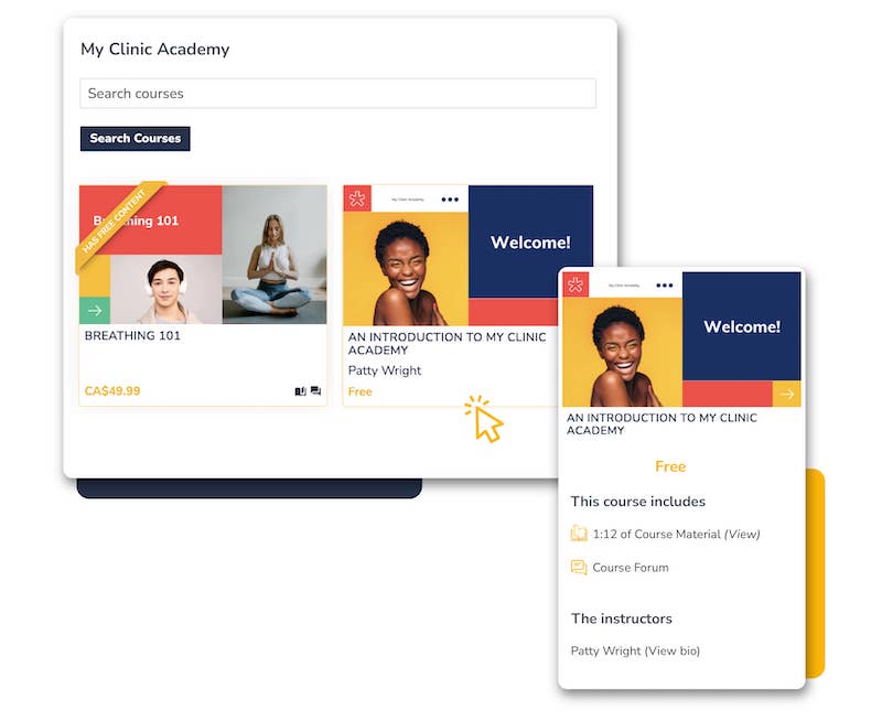 Launch your own professionally branded platform to host and sell online courses (as well as memberships) to grow your bottom line. Your Clinic Academy will include your branding, providing a seamless client experience.