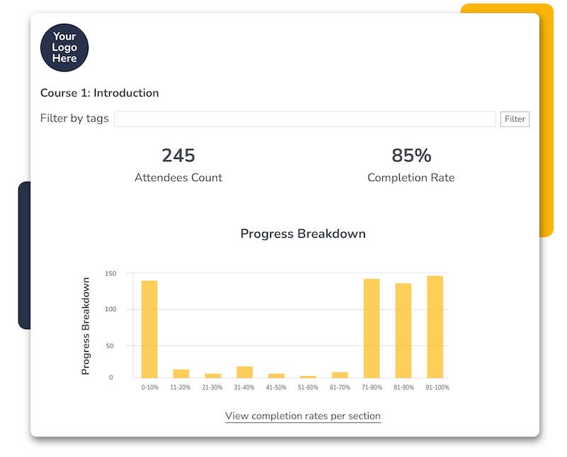 Your dashboard offers an overview of all relevant platform statistics and analytics so you can make informed business decisions. Your dashboard makes it easy to manage access, questionnaires, branding, and instructors for your Academy.